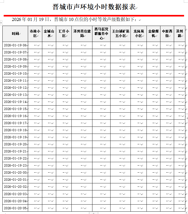 晋城市声环境小时数据报表(2026年01月20日)