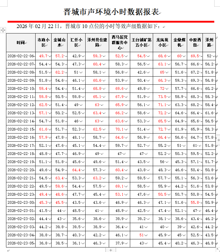 晋城市声环境小时数据报表(2026年02月23日)