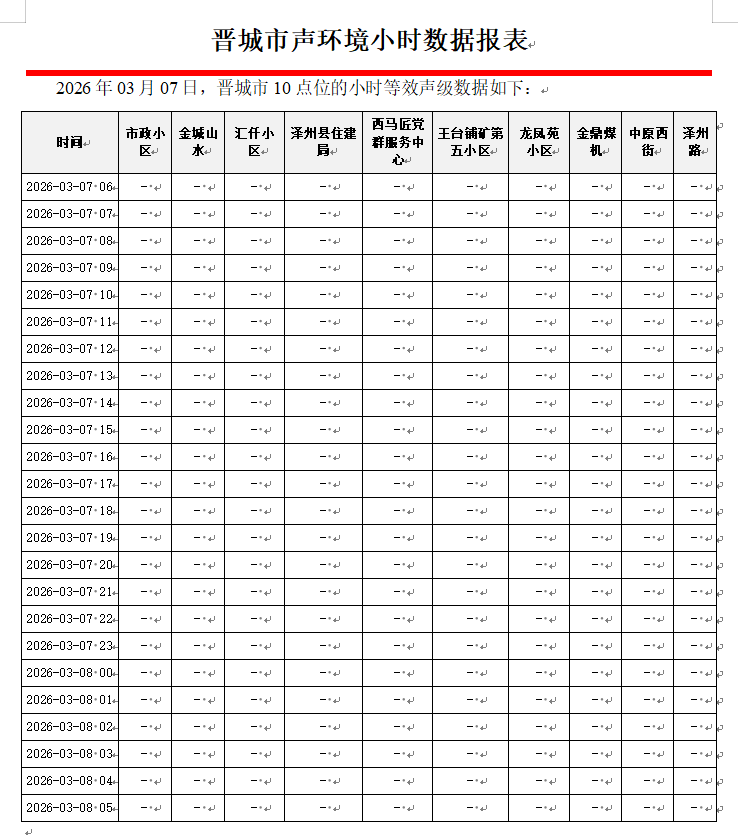 晋城市声环境小时数据报表(2026年03月08日)