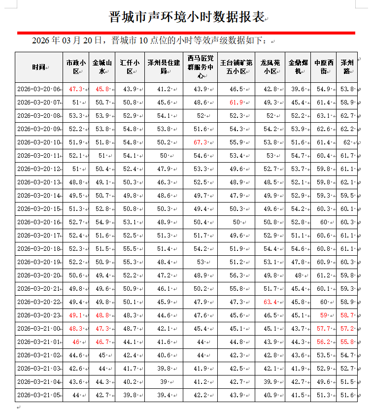 晋城市声环境小时数据报表(2026年03月21日)